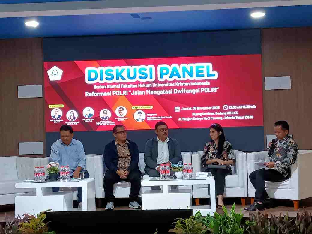 Diskusi panel yang digelar oleh IKAFAH UKI ini menghadirkan para pakar hukum, praktisi, dan tokoh masyarakat lintas generasi untuk menggali gagasan strategis dalam memperkuat agenda reformasi kelembagaan Polri pasca dua dekade pemisahan dari TNI.