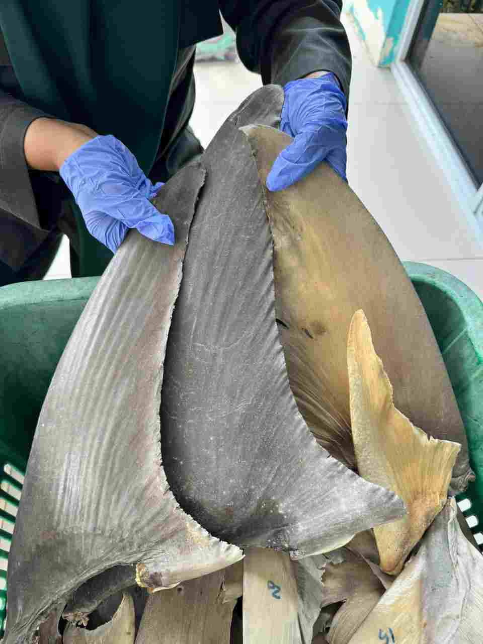 Total 34,35 kg sirip ikan hiu dengan nilai 37,8 juta rupiah yang akan dikirim, terdiri dari 16,25 kg dari hiu kerbau atau _Carcharhinus leucas_ ; 9,55 kg dari hiu pari lontar atau _Rhynchobatus australiae_ ; 2,95 kg dari hiu pari kikir atau _Glaucostegus typus_ ; 2,75 kg dari hiu kejen atau _Carcharhinus limbatus_ ; 2,40 kg dari hiu tenggiri atau _Galeocerdo cuvier_ dan ; 0,45 kg dari hiu kacang atau _Chaenogaleus macrostoma_.